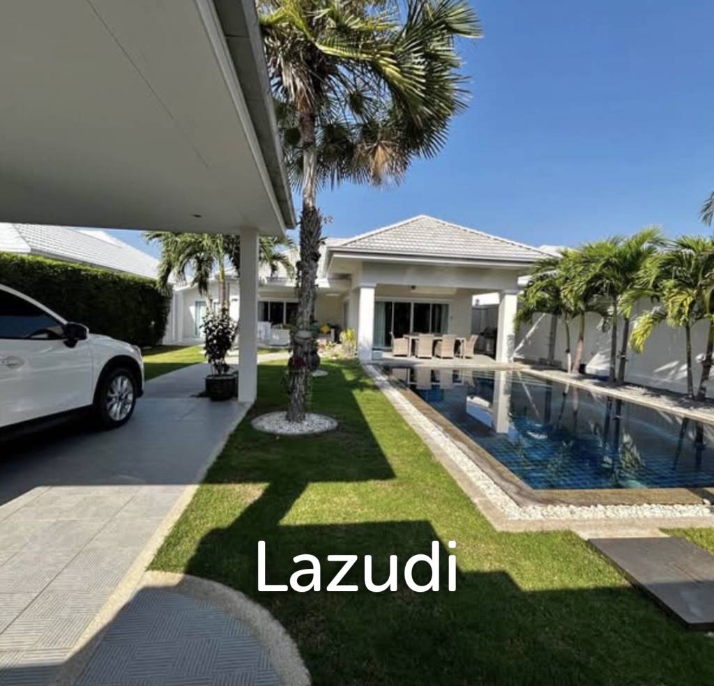Welcome to this large villa in the THE LEES 3, in Thap Tai area, Hua Hin. This single-story residence features modern architecture, white exterior walls.