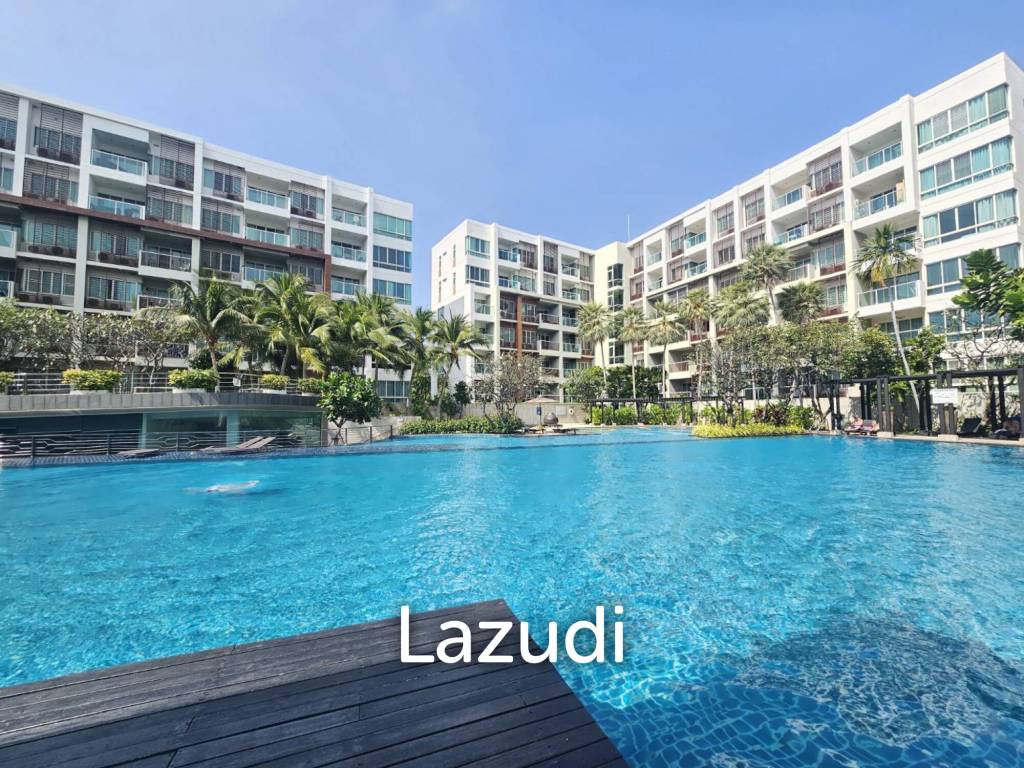 The condo sits within The Seacraze Hua Hin, a mid-rise residential project in the Nong Kae area of Hua Hin, Prachuap Khiri Khan. The setting features multiple contemporary condominium blocks, landscaped gardens and tropical planting for a resort-style environment.